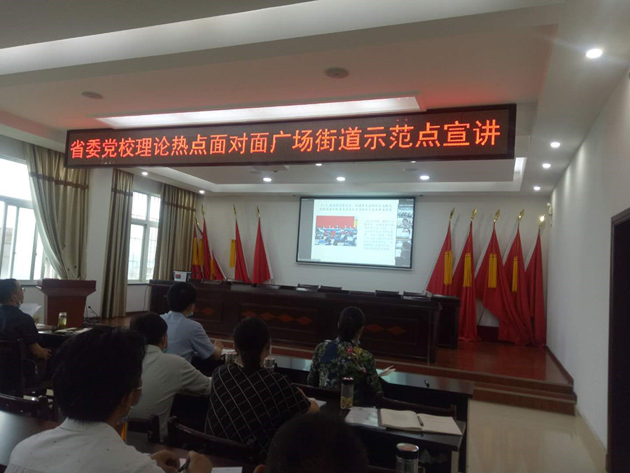 为深入学习贯彻全国两会精神,推进党的创新理论直达基层、走近群众。7月2日下午,省委党校与孝感市孝南区广场街道办事处再次通过腾讯会议线上宣讲及现场集中听会的方式开展“理论热点面对面示范点”“两会”精神宣讲活动。省委党校科研处全体干部和孝感市委宣传部、孝感区委宣传部,以及孝南区广场街道办事处全体机关干部、十三个社区全体社区干部近200余人参加了此次理论宣讲。