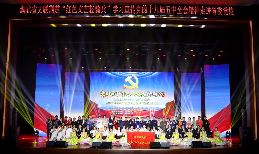 2017年以来,省文联在习近平总书记给内蒙古乌兰牧骑队员回信精神鼓舞下,坚持“轻”“亲”结合,积极开展荆楚“红色文艺轻骑兵”文艺志愿服务活动,得到社会各界广泛赞誉,在当晚的活动中,省内众多文艺名家联袂为学员演绎了一台文艺大餐。演出在《不忘初心》大合唱中拉开帷幕,歌曲、楚调、小品、黄梅戏、舞蹈、湖北大鼓、杂技等精彩节目轮番上演。歌曲《再见大别山》带领大家重温了共产党人为了民族独立解放,浴血奋斗,用生命和鲜血铸就的大别山精神;楚调《咏梅》则用凌寒飘香,铁骨冰心的梅花,象征了共产党人坚韧不拔,不屈不挠,自强不息的精神品质;小品《安全连着千万家》告诉大家纪律是带电的“高压线”,绝不能触碰,安全是工作的“生命线”,关乎千家万户的幸福生活;歌曲《我的心中有个你》和朗诵《等待》则分别致敬广大奋战在脱贫攻坚主战场的党员干部和中国老一辈科学家、“两弹”元勋邓稼先夫妇;歌曲《红船》和《火热》让大家铭记从烟雨南湖到巍巍井岗,为有牺牲多壮志、人间正道是沧桑;大鼓《打铁还需自身硬》则提醒大家“打铁还需自身硬,无须扬鞭自奋蹄”,要坚定理想信念,坚守共产党人精神追求,永葆共产党人政治本色。最后文艺巡演在歌舞《我爱你中国》的激扬旋律中落下了帷幕。