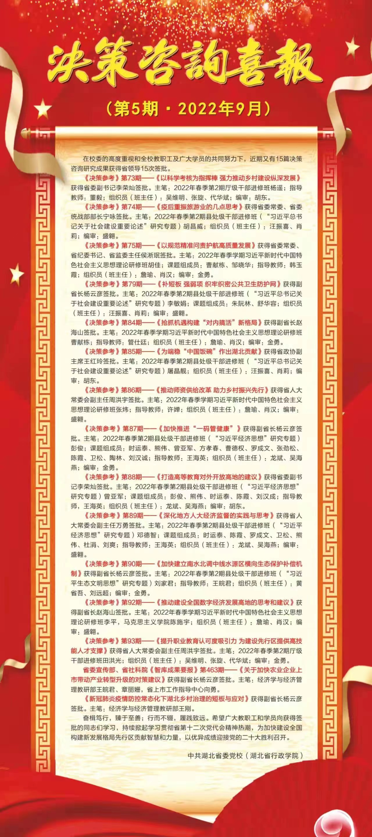 喜 报 | 我校15篇《决策参考》获省领导15次签批