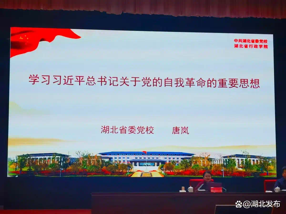 上午9时,全体学员齐聚省委党校报告厅,聆听专题理论辅导。省委党校副校长唐岚围绕《习近平总书记关于党的自我革命的重要思想》作系统阐释,深入讲解党的自我革命重要思想的形成过程、主要内容与理论贡献,深刻分析反腐败斗争“压倒性胜利”与“永远在路上”的辩证关系。授课过程中,学员们凝神静听、认真记录,在关键处深入思考,于精彩处会心颔首。大家一致认为,自我革命是我们党跳出历史周期率的第二个答案,是新时代全面从严治党的根本遵循,必须从理论高度深刻把握其精神实质,从实践层面切实找准履职切入点。