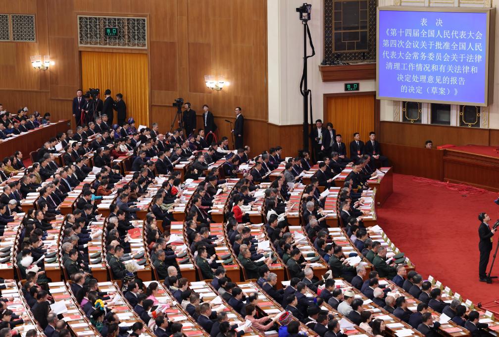 3月12日,第十四届全国人民代表大会第四次会议在北京人民大会堂举行闭幕会。新华社记者 翟健岚 摄