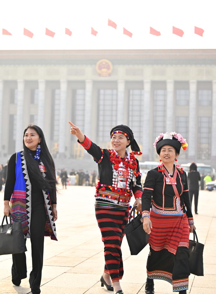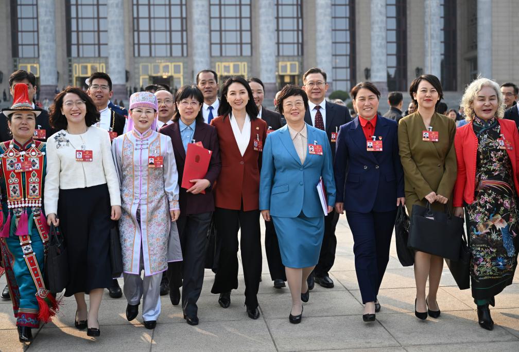 3月12日,第十四届全国人民代表大会第四次会议在北京人民大会堂举行闭幕会。这是闭幕会后,代表们走出人民大会堂。新华社记者 陈晔华 摄