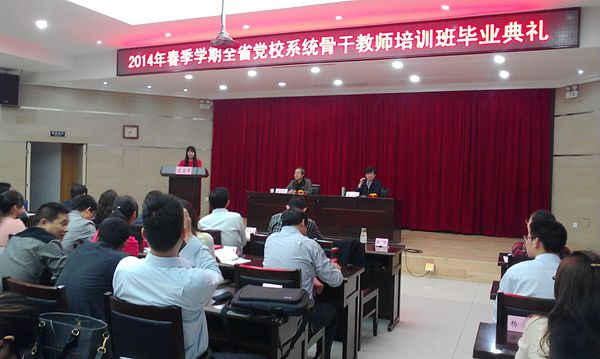 4月2日上午,2014年春季全省党校系统骨干教师培训班毕业典礼在教学楼报告厅举行。省委党校副校长肖卫康出席并讲话,副巡视员童志纬主持。学员代表周正祥、余彧发言。在听取学员代表发言后,肖卫康对学员在校学习期间的表现给予了充分肯定,并就如何当好一名合格的党校教员与学员们交流。