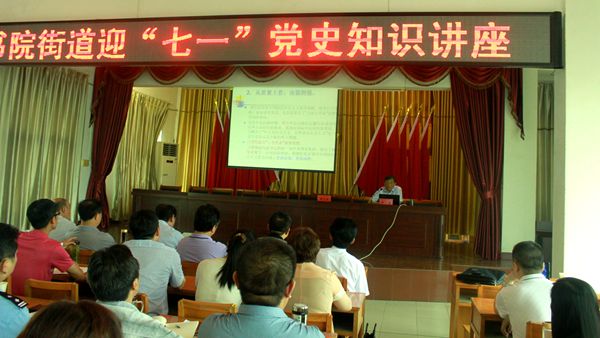 为庆祝建党93周年,回顾党的光辉历史、缅怀党的丰功伟绩,6月30日,省委党校理论热点面对面示范点孝南区书院街召开纪念建党93周年暨村社群众路线教育实践活动动员大会。省委党校选派中共党史党建教研部教授徐仲韬为书院街全体党员干部作了“迎七一”党史知识专题讲座。