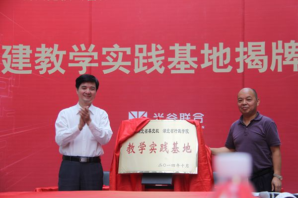 10月20日,我校与武汉光谷联合集团有限公司共建教学实践基地揭牌仪式在光谷联合集团总部举行。副校长肖卫康与武汉光谷联合集团有限公司总裁黄立平共同为教学实践基地揭牌。副巡视员童志纬代表省委党校与武汉光谷联合集团有限公司执行总裁胡斌签定《共建教学实践基地协议书》。揭牌仪式由武汉光谷联合集团有限公司集团办公室主任李林主持。我校厅级干部进修一班学员,教务处、经济学与经济管理学教研部相关负责人员参加揭牌仪式并开展实践教学。