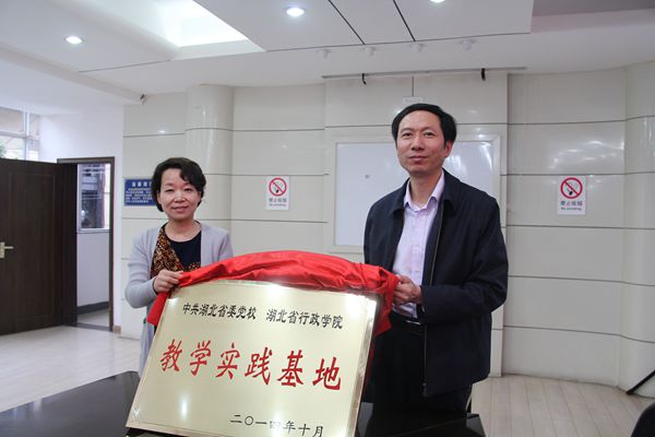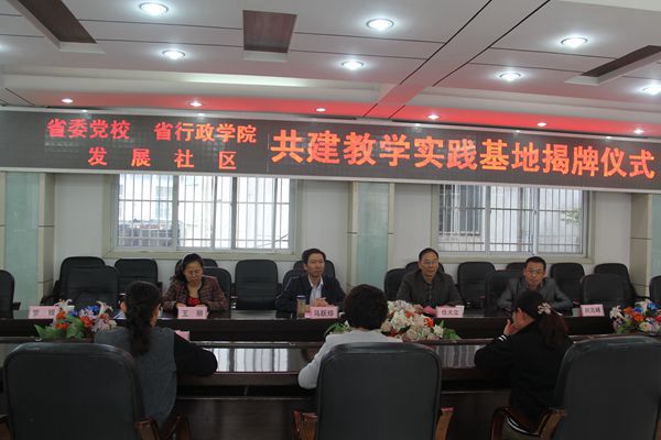 10月31日下午,我校与武汉市硚口区宗关街发展社区共建教学实践基地揭牌仪式在宗关街发展社区举行。校委委员、教育长马跃珍,宗关街党工委副书记吴红共同为教学实践基地揭牌。教务处副处长王丽(主持工作)代表省委党校与宗关街发展社区党委书记刘德荣签定《共建教学实践基地协议书》。揭牌仪式由发展社区党总支副书记柯毅主持。教务处、中共党史党建教研部、公共管理教研部有关负责同志参加揭牌仪式。