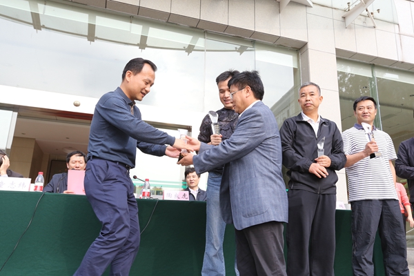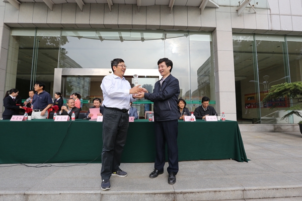 常务副校长陶良虎为获团体第一名班级颁奖