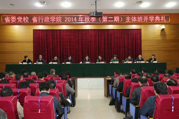 11月10日上午,我校(院)举行秋季学期(第2期)主体班开学典礼。省委常委、组织部部长、省委党校校长贺家铁出席并讲话,常务副校(院)长陶良虎主持。省委组织部秘书长靳祖春,省人社厅副厅长张建平,我校(院)校委委员、纪检组长文汉臣,副校长朱训集、刘光远、邹德文、肖卫康,校委委员、教育长马跃珍,副巡视员罗桂荣、童志纬出席。
