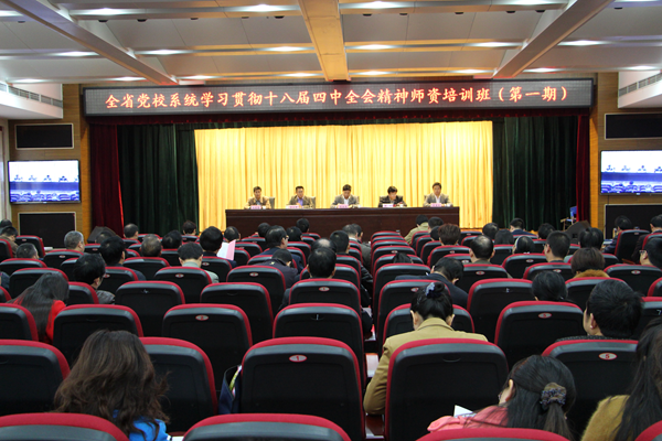 为推动全省党校系统深入学习宣传贯彻党的十八届四中全会精神,11月1日-8日,我校采取“送教下基层”形式,分别在十堰、荆门等地举办三期全省党校系统学习贯彻十八届四中全会精神师资培训班,来自全省各市、县级党校以及企业党校骨干教师500余人参加了培训。