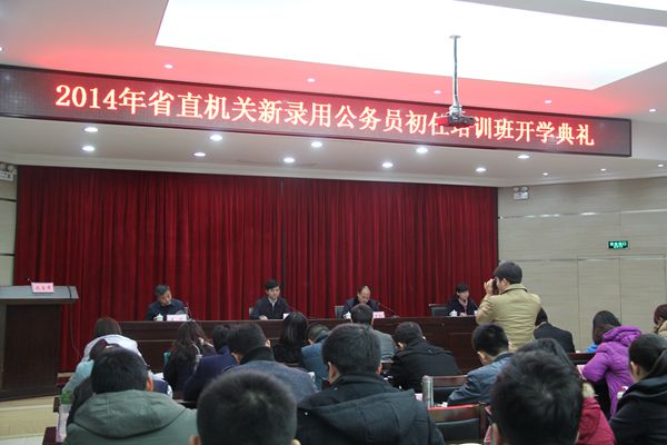 1月12日,2014年省直机关新录用公务员初任培训班在我校(院)举办。省公务员局副局长段万和,省委党校、省行政学院副校(院)长肖卫康,省委组织部、省公务员局等有关方面负责同志与来自省直机关的125名学员参加了培训班开学典礼。