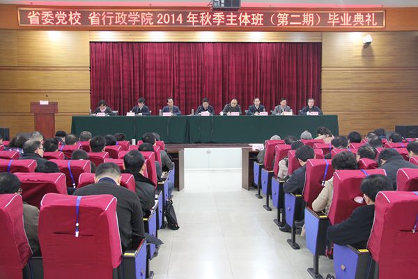 1月9日上午,我校(院)举行秋季学期(第2期)主体班毕业典礼。常务副校(院)长陶良虎出席并讲话,副校(院)长刘光远宣读优秀班干部表彰决定。副校(院)长邹德文,校委委员、教育长马跃珍,副巡视员罗桂荣、童志纬,学员党风廉政建设巡视员刘炳祥、吴克超、余俐娜出席。毕业典礼由副校(院)长肖卫康主持。厅级干部进修班学员、鄂州市委常委、统战部长陈昌宏,县处级干部进修三班学员、咸宁市供销合作社联合社党组书记、主任赵显院作为学员代表发言。