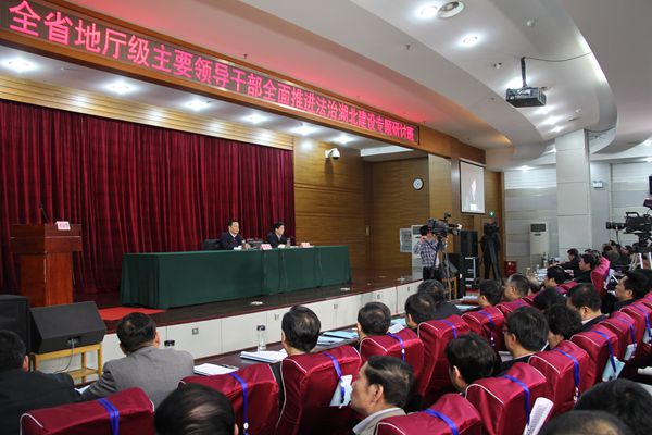 张昌尔强调,法治建设是一项长期任务,必须落实到年度计划,做到年初有部署,年中有督查,年底有结账,年年有进步。要抓好开局起步工作,层层组织法治建设专题培训,推进三级法治创建,狠抓司法体制改革,大力开展法治宣传。领导干部要带头信仰法治,带头依法决策,带头接受监督,做尊法学法守法用法的表率。要支持司法机关依法独立行使检察权、审判权,落实建设性执法司法“十六条意见”,大力推进行政审批制度改革和综合执法改革,着力打造公正的司法环境和市场环境,坚决维护社会公平正义。要加强组织领导,落实主体责任,完善领导体制,强化绩效考核,探索建立选人用人的法治导向,为法治湖北建设提供有力组织保证。