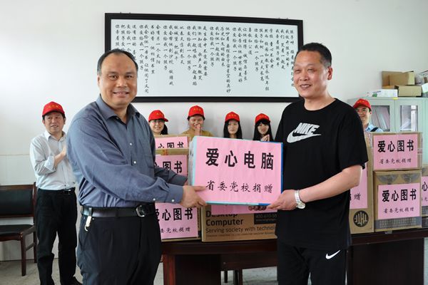 当天,志愿者一行还慰问了脉旺镇桃花小学,并向该校捐赠了2台电脑及1000余册由我校教职工自发捐赠的少儿读物。这些电脑和图书将全部用于“三万”留守儿童关爱工程,为该校留守儿童建立“爱心视频教室”及“爱心书香阅读室”。