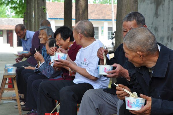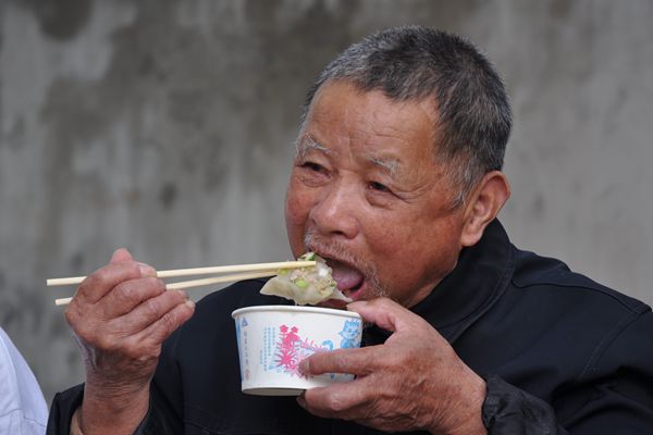 图7:吃上热腾腾的饺子,老人们的脸上露出幸福的笑容