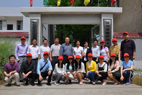 图11:校领导、志愿者与汉川市及脉旺镇领导合影
