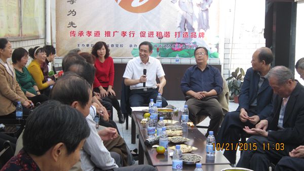 10月21日是中华传统节日重阳节,在这个特殊的日子里,湖北省委党校专家组一行在副校长邹德文教授的带领下,赴孝感市孝南区书院社区开展理论热点面对面示范点建设——开启“孝德大讲堂”活动。综合教研部主任李银安教授、科研处何德平处长,孝感市委常委、宣传部部长仇平贵,宣传部纪检组长湛卫锋,宣传部副部长邹巧琳,孝南区委书记杨军安,区委常委、宣传部长姚惠萍,湖北工程学院孝文化研究中心主任胡泽勇教授等有关领导、专家和社区老年居民代表约40余人参加了此次活动。