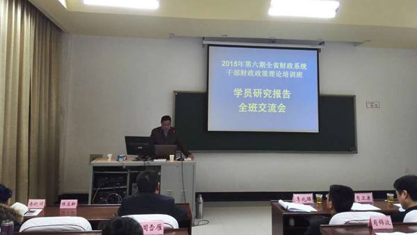 根据教学计划安排,每位学员以“如何推进财税体制改革不断深入”为主题撰写了研究报告,在六个小组进行研讨交流的基础上,推荐出了谌立杰等七位学员代表在全班交流。