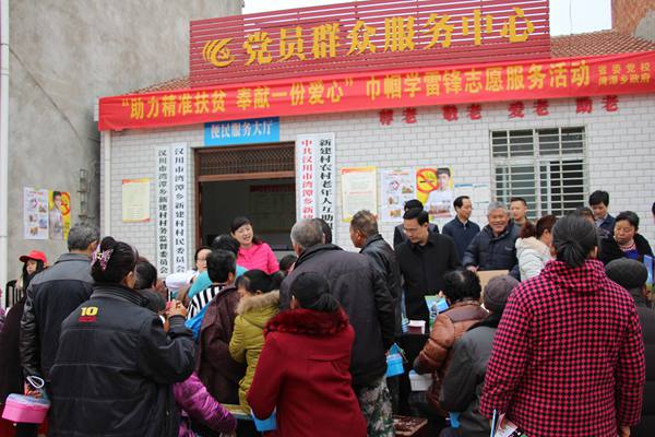 为纪念“三八”国际妇女节,弘扬“奉献、友爱、互助、进步”的志愿精神,3月15日,我校“助力精准扶贫 奉献一份爱心”巾帼学雷锋志愿服务活动在汉川市湾潭乡新建村举行。副校长刘光远、肖卫康出席活动,校女职工、青年志愿者及三万工作队员近50人参加了活动。