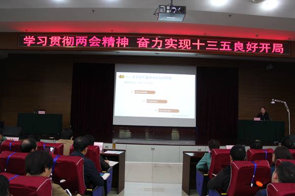 为深入学习贯彻全国“两会”精神,推进广大党员干部全面了解国家“十三五”规划纲要,4月7日下午,全国人大代表、省发展和改革委员会党组书记、主任李乐成同志应邀来校作《学习贯彻两会精神 奋力实现十三五良好开局》的专题辅导报告。校领导、主体班学员、全体教职工参加了报告会。报告会由副校长刘光远主持。