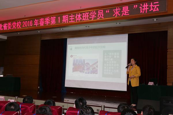 “求是”讲坛是学员组织处将学员课前“微论坛”活动提档升级,搭建学员相互交流新平台,深化教学改革的重要举措。2016年以来在持续推行课前“微论坛”的基础上,优中选优,将话题具有普遍性、讲述带有启迪性、对策带有建设性的优质资源进行整合,搭建“求是”学员讲坛新平台。使优质的微论坛内容在各主体班中共享,极大提高了“微论坛”的质量和水平。