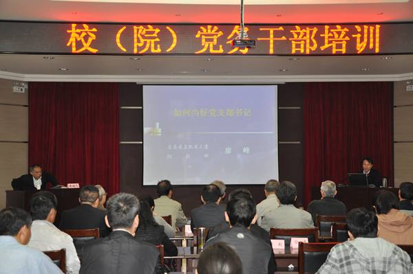 为认真学习贯彻省委《意见》精神,不断加强校(院)党支部建设,增强支部书记主体责任意识,提高支部书记和委员履职尽责能力,推动“两学一做”学习教育深入开展,5月27-28日,我校举办了为期两天的校(院)党务干部培训班。校委委员、副校长、机关党委书记张继久出席开班仪式并讲话。校(院)党务干部共70余人参加培训。