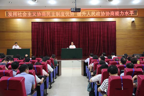 5月25日上午,省政协主席张昌尔到省委党校、省行政学院,为春季第二期主体班300多名学员作了题为“发挥社会主义协商民主制度优势、提升人民政协协商能力水平”的辅导报告。他强调,要深入学习贯彻习近平总书记社会主义协商民主战略思想,发挥好社会主义协商民主制度优势、人民政协作为社会主义协商民主重要渠道和专门协商机构的重要作用,不断提高协商能力,为全面建成小康社会凝聚智慧力量。