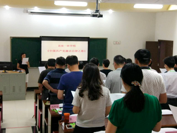 “踏着时代的脚步,我们同唱一支歌”,美妙的音符在教学楼里回荡。9月7日下午,省委党校秋季学期处干一班利用课后时间,组织全体学员在101教室集中学唱《中国共产党廉洁自律之歌》,一词一句,一腔一调,满怀激情、气势磅礴、令人振奋。