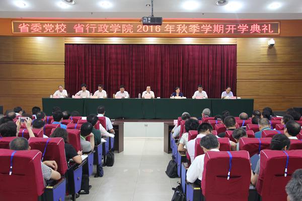9月1日,省委党校、省行政学院举行2016年秋季学期开学典礼。省委副书记、常务副省长、省行政学院院长王晓东强调,要坚决贯彻落实省委、省政府决策部署,把握形势、坚定信心,心无旁骛谋发展,攻坚克难促改革,扑下身子抓落实,确保完成全年目标任务,为实现“率先、进位、升级、奠基”总体目标奠定坚实基础。