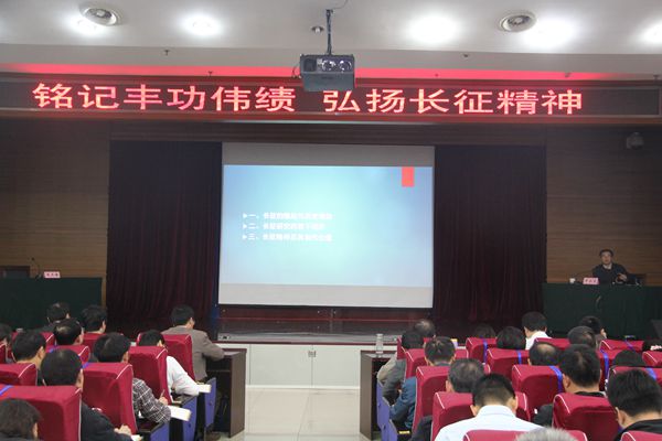 一是举办纪念红军长征胜利80周年专题报告会。10月13日下午,省委党校邀请武汉大学罗永宽教授来校作《铭记丰功伟绩,弘扬长征精神》报告。全体校领导、主体班学员、全校教职工四百多人参加了报告会。