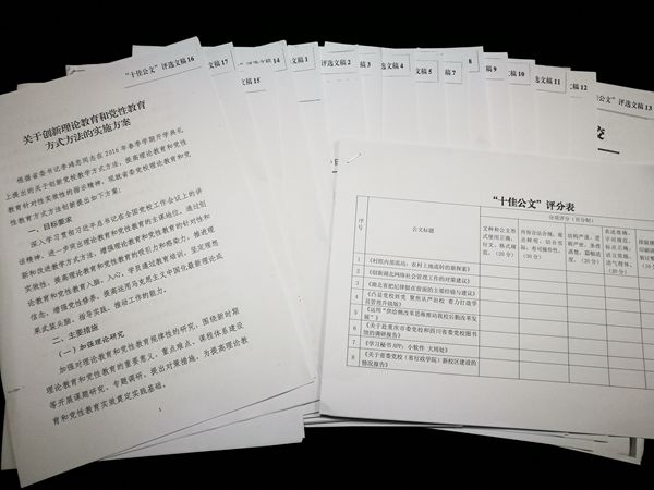 为丰富“两学一做”学习教育内容,进一步落实“三抓一促”活动要求,提高教职工办文办会办事能力,最近我校开展了“十佳公文”评选活动。《湖北省把纪律挺在前面的主要经验与建议》、《关于创新理论教育和党性教育方式方法的实施方案》等10篇公文被评为“十佳公文”。