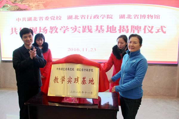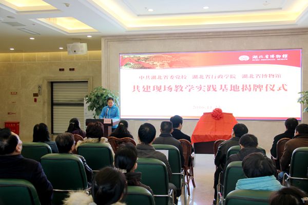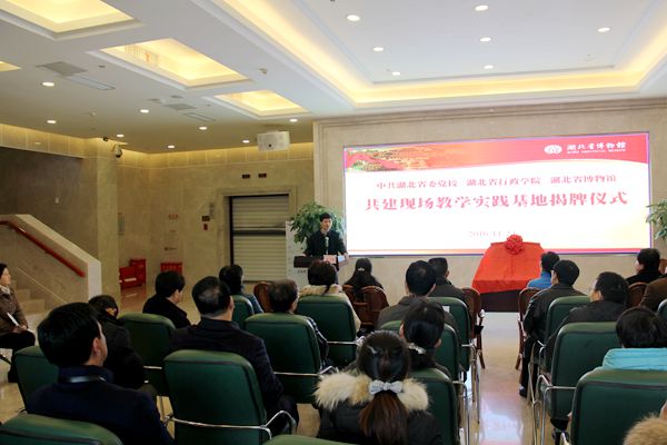 2016年11月23日,省委党校、省行政学院与省博物馆共建教学实践基地揭牌仪式在省博物馆举行。省委党校、省行政学院副校(院)长肖卫康与省文化厅党组成员、副厅长段天玲共同为共建现场教学基地揭牌,省委党校、省博物馆共同签定《共建现场教学基地协议书》,揭牌仪式由省文物局副局长赵令珍主持。省委党校秋季第2期厅级干部进修班全体学员、中共党史党建教研部、教务处、学员组织处、公务员培训处负责人参加揭牌仪式。