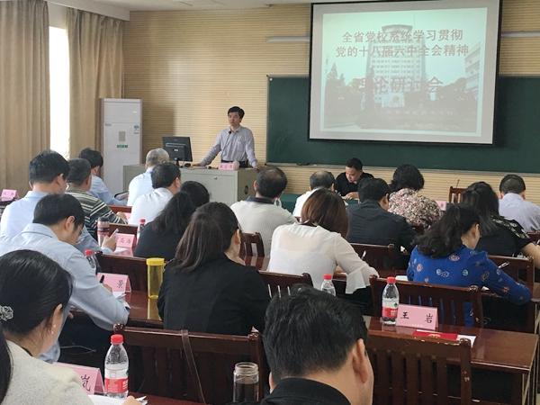 研讨会为期半天,内容有三项,一是主题报告,二是大会交流发言,三是会议小结。副校(院)长肖卫康为全体参会人员作主题报告,肖校长从“充分认识十八届六中全会的重大意义”、“什么是党内政治生活”、“新形势下党内政治生活的要求有哪些”、“当前应该如何贯彻落实好六中全会精神”四个方面,用详实的案例和具体的分析,为全体与会人员做了一场生动活泼、深入浅出的主题报告。