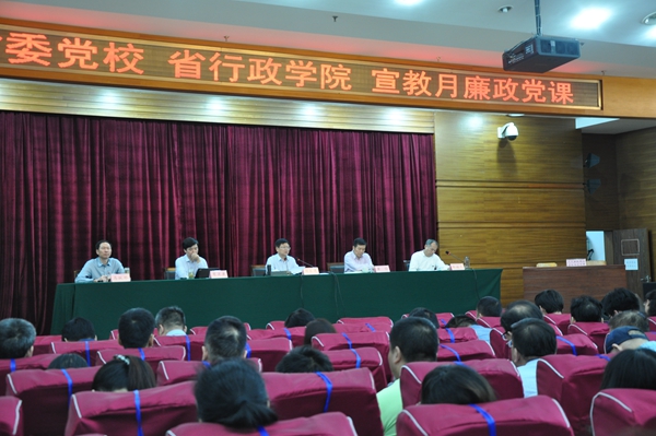5月12日下午,省委党校(省行政学院)在办公楼报告厅召开全校教职工大会,常务副校(院)长陶良虎以“贯彻六中全会精神 推进全面从严治校”为主题给大家上了一堂廉政党课。