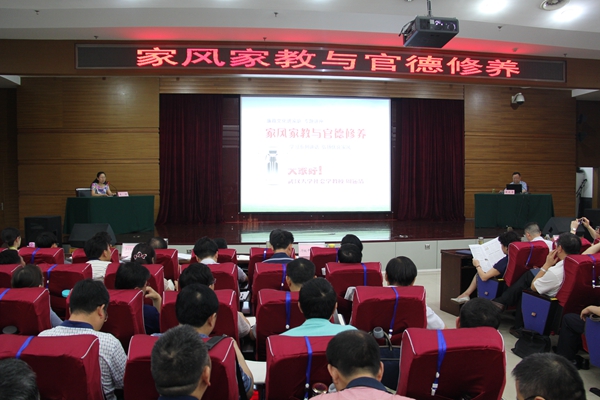 周运清教授从三个方面深刻阐述了注重家庭家教家风,提升领导干部官德修养的重要意义及实现途径。一是注重家庭、注重家教、注重家风。围绕“何为家风?家风的问题在哪里?家风和家风问题的影响有多大?”,深刻阐述了家庭家教家风是国家发展、民族进步、社会和谐的重要基点,“勤俭持家”是我们中华民族的经典家风,家风好坏可以使人上天堂也可以使人下地狱,治国平天下,齐家是根本。二是守纪律、讲规矩,把官德修养融入家风建设。围绕“何为官德?官德的问题在哪里?如何把官德修养融入家风建设?”针对领导干部官德修养存在的突出问题,用周恩来总理清廉治家的“十条家规”和国事大过天的“习氏家风”等多个案例,深刻阐述了领导干部自觉加强官德修养的重要性和必要性,要通过加强家庭廉政文化建设,增强廉洁自律意识。三是领导干部要自觉践行社会主义核心价值观,弘扬家庭美德。把培育和弘扬社会主义核心价值观作为家风家教的基础工程,要将“夫妻和睦、男女平等、尊老爱幼、勤俭持家、邻里团结”作为家庭美德的基本规范,内化于心、外化于行。