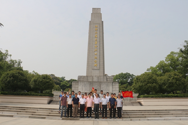 在湘鄂西苏区革命烈士纪念碑前,刘光远副校长代表全体党员向烈士纪念碑敬献了花篮。面对鲜红的党旗,全体党员缅怀革命先烈,重温入党誓词,表达了永远忠于党、忠于人民的初心和决心。