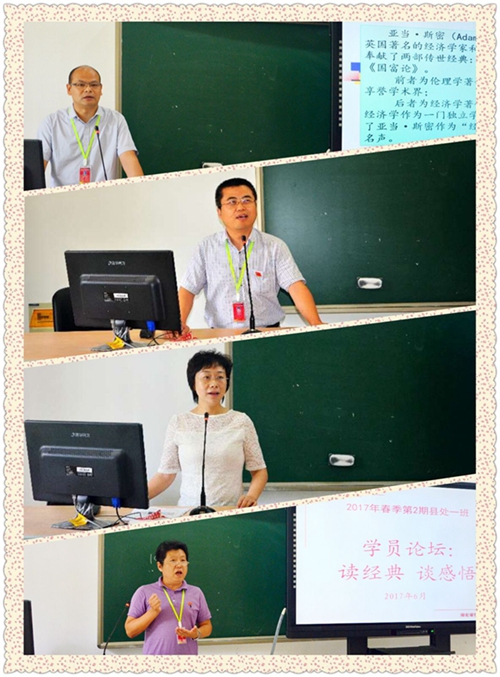 县处一班全体学员参加了此次论坛,大家通过“读经典、谈感悟”活动,陶冶了情操,坚定了理想信念,也展现了全班“爱读书、善思考、勤学习”的良好精神风貌。同时,通过阅读分享进一步培养了广大学员的读书兴趣,对于坚定理想信念,坚持正确政治方向,提高战略思维能力、综合决策能力、驾驭全局能力具有极其重要的现实意义。
