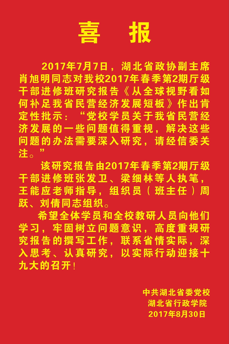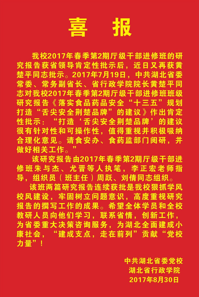 树立问题意识抓研究 学员学习管理出成效 ——2017年春季第2期厅干班两篇研究报告获省领导肯定性批示
