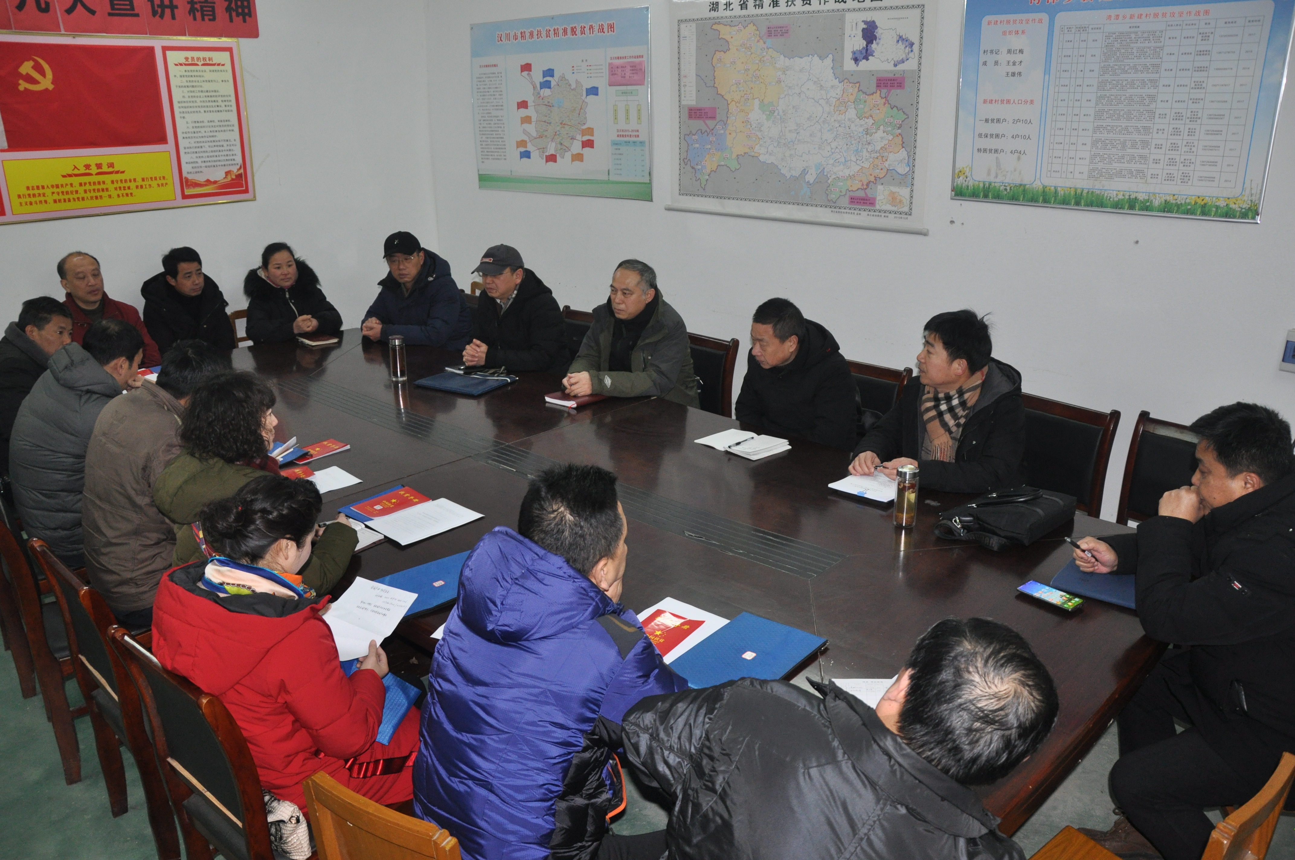 2月20日,新年伊始,省委党校副校长张继久带领结对帮扶责任人一行冒着春寒赶赴汉川市湾潭乡新建村开展到户帮扶活动,并与扶贫工作队队员座谈,统筹布置新一年的精准扶贫工作。湾潭乡党委书记李国胜参加座谈。
