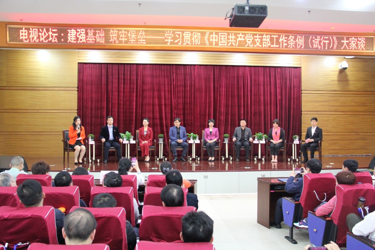 4月17日,我校(院)举办以“建强基础 筑牢堡垒——学习贯彻《中国共产党支部工作条例(试行)》大家谈”为主题的电视论坛,县处级干部进修班全体学员参加。