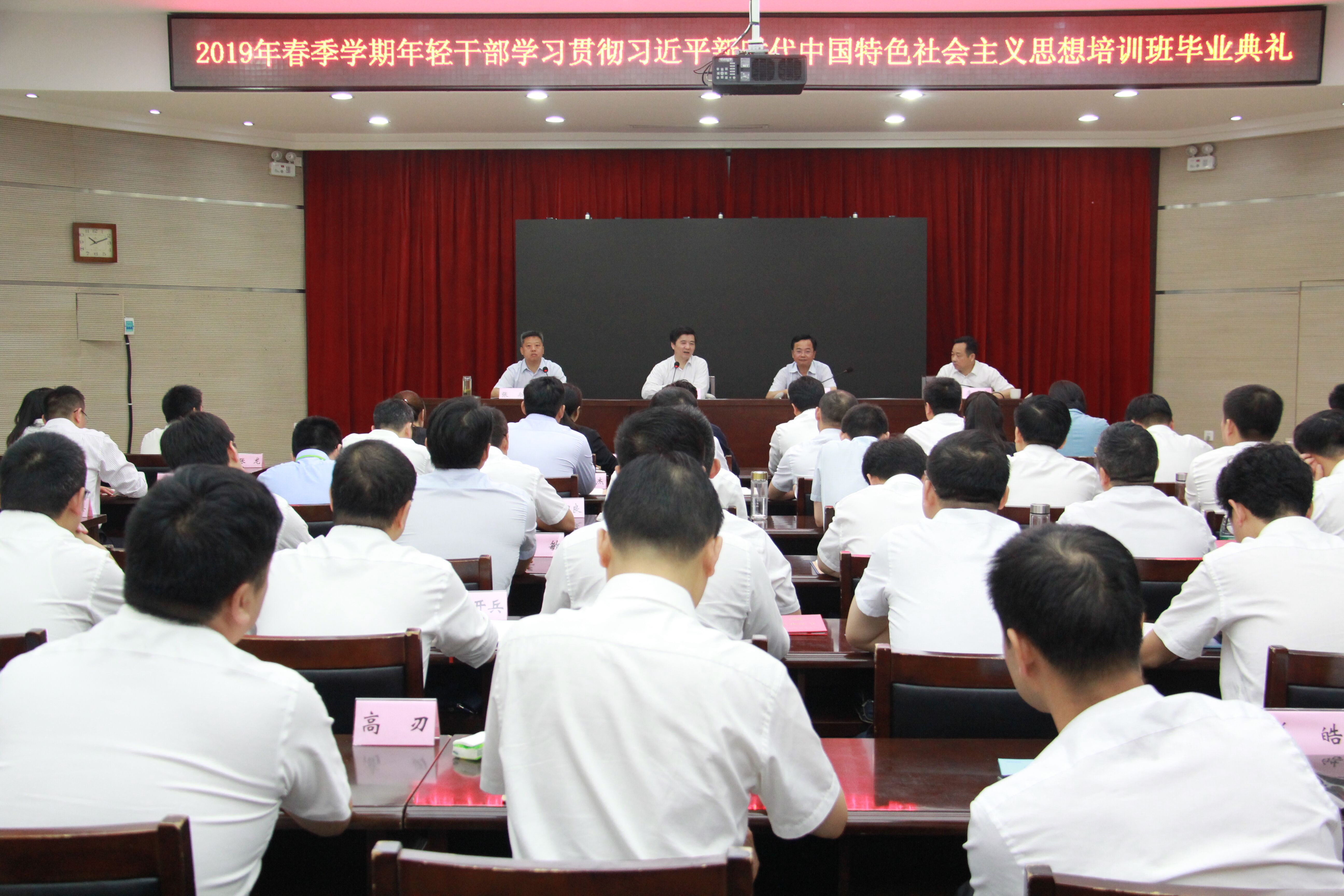 5月31日上午,我校(院)2019年春季学期年轻干部学习贯彻习近平新时代中国特色社会主义思想培训班毕业典礼在教学楼报告厅举行。副校(院)长肖卫康、省委组织部干部教育处处长丁仁山出席毕业典礼,教务处处长张航主持。