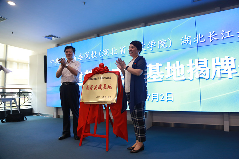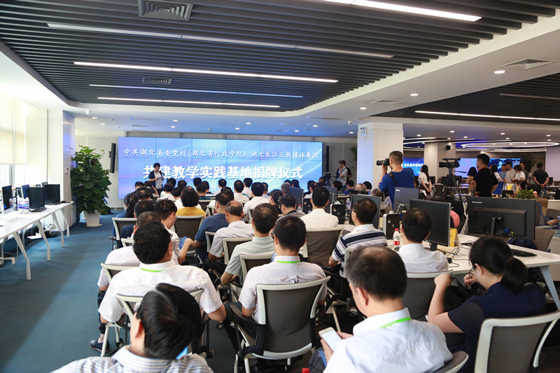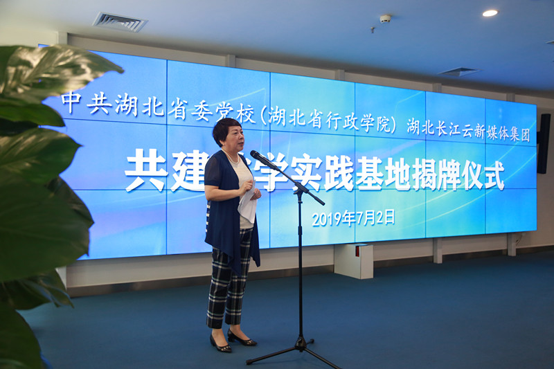 7月2日上午,我校(院)与湖北长江云新媒体集团共建“新闻发言与媒体沟通”教学实践基地揭牌仪式在湖北广播电视台新闻大楼一楼举行。副校(院)长肖卫康,湖北广播电视台党委委员、副台长、湖北长江云新媒体集团董事长张建红共同为现场教学实践基地揭牌。教务处处长张航与湖北长江云新媒体集团副总经理李鹏签订《共建教学实践基地协议书》。春季第2期厅级干部进修班参加相关教学活动。
