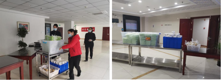 24小时紧急集结确保160人餐饮供应。2月初,党校的正常假期尚未结束,管理服务人员都散居在全国各地,收拢队伍成为提供有效服务的关键。2月3日,党校两台专车马不停蹄,东至当阳、西达恩施,南抵五峰、北到远安,行程2000余公里,朝发夜归,至4日晚十二时,才将50多名当时能够到岗的服务人员从休假地全部接到校内。紧急启动食材供应体系,多方联系生活用品供应商,拓展供货渠道,调配供应短缺,启用冷库增加食材储备,供应首批160名医务人员的早餐只用了不到24小时,48小时内实现了680人餐饮正常供应。