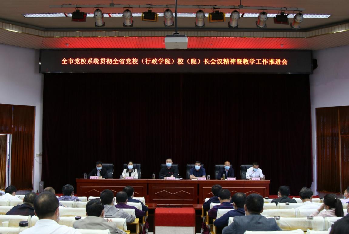 市委党校校委委员、副县级干部、中层干部、全体专兼职教师,各县(市、区)党校常务副校长、分管教学副校长、教师代表60余人参加会议。