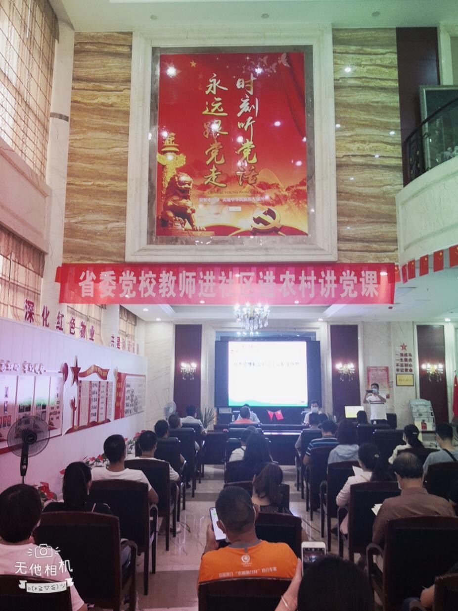 为深入贯彻落实全省党校(行政学院)校(院)长会议精神,按照省委党校年度业务指导工作要点安排,扎实推进党校教师进社区进农村讲党课(简称“两进一讲”)活动,教育引导基层各类组织和居民群众听党话、跟党走,助力社区、农村治理,6月5日,省委党校马克思主义基础理论教研部主任黄开华副教授与校院工作指导处相关同志赴潜江市园林办事处红庙社区金桥郡小区开展“两进一讲”活动。社区党员、居民代表、党校教师共计40多人参加宣讲活动。