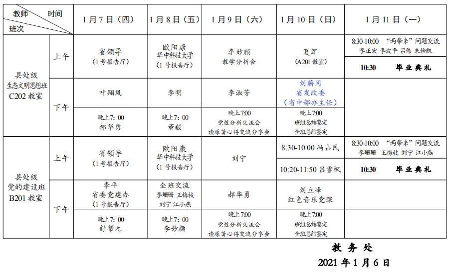 2020年秋季学期第2期主体班第六~七周教学活动安排暨调课通知