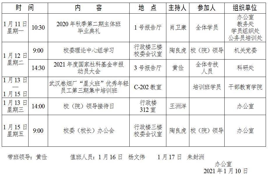一周安排(2021年1月11日-1月17日)