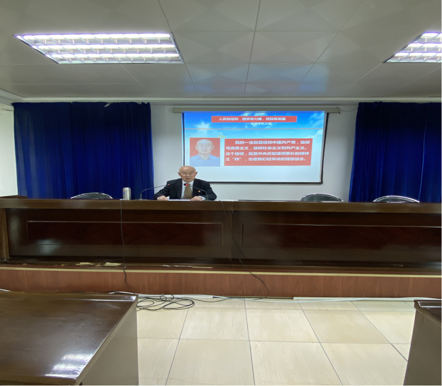 陈教授以《信仰的力量》为主题,回顾了自己感党恩、跟党走、讲党课、弘扬党的优良作风的历程,给我们上了一堂深情生动的党课。陈教授不忘初心跟党走,坚持21年每年向党组织写一份入党申请书或思想汇报,直到1979 年在党旗下庄严宣誓。在退休后,克服癌症和帕金森综合症的病痛,历时近20年撰写并自费出版了100万字的《中国共产党为什么特别有力量》一书,受到省委领导和省委宣传部、老干部局的肯定、表彰和各级媒体广泛关注,被誉为“峡江红烛”。