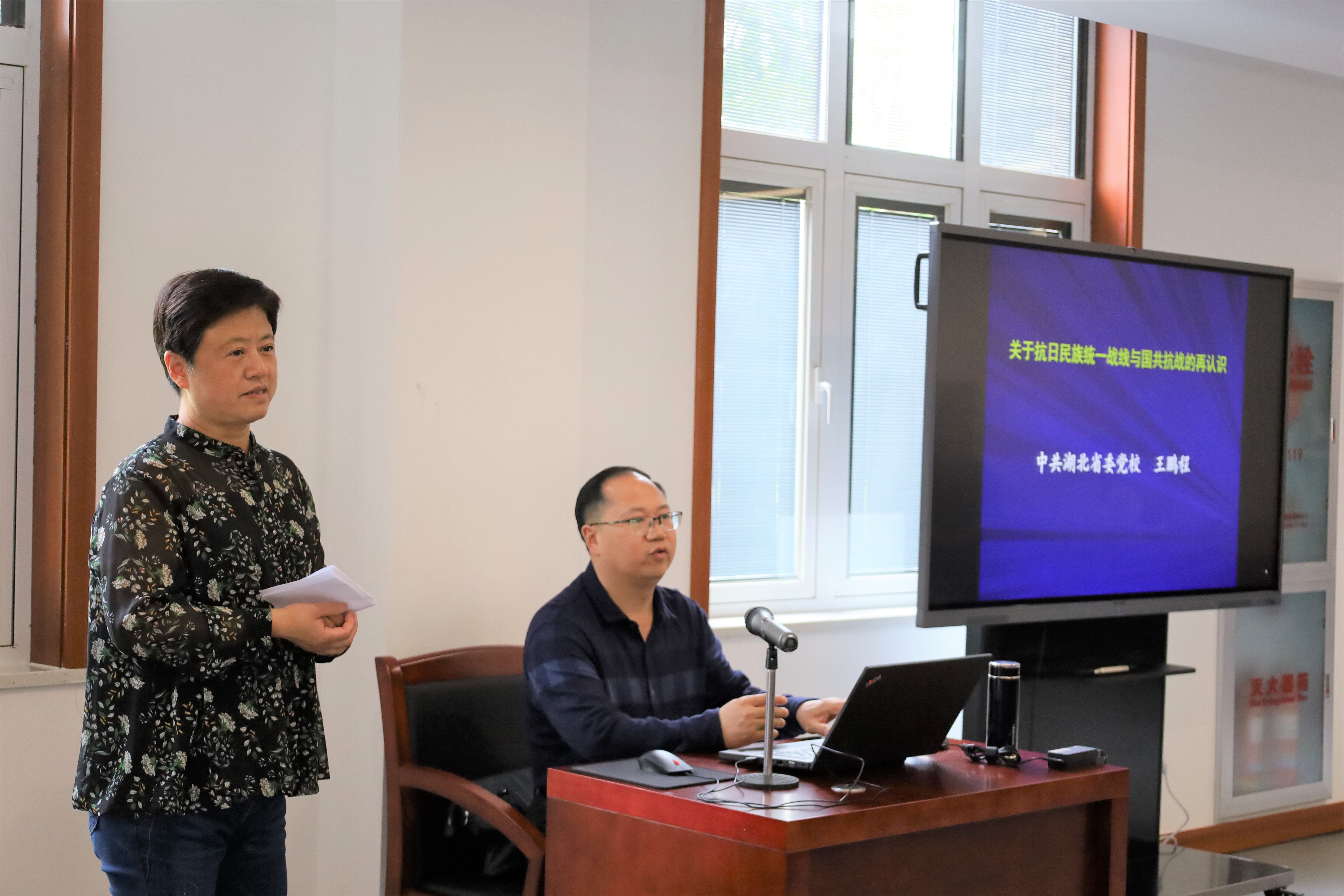 5月17日下午,2021“书香党校”读书月系列活动学术沙龙第三期在图书馆阅览室如期举行,主题为关于抗日民族统一战线与国共抗战的再认识,主讲人是报刊部王鹏程教授,来自乡镇书记班的50余名学员参与活动。