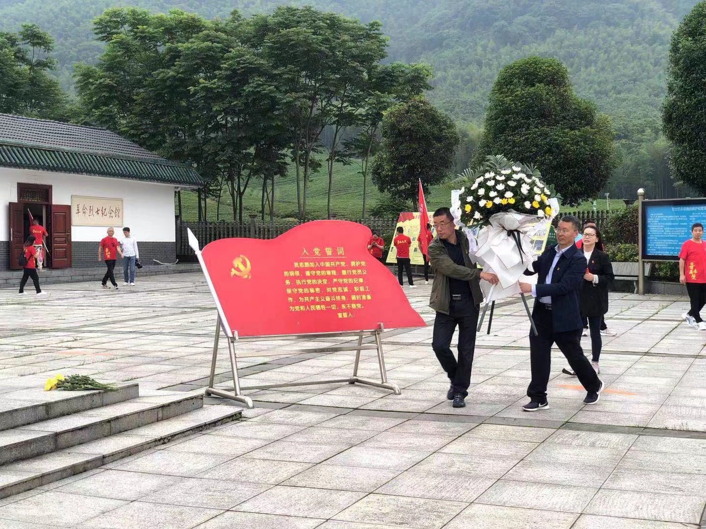 在赤壁市羊楼洞烈士陵园,计划财务处党支部向革命烈士纪念碑和烈士墓敬献花篮,洁白的菊花寄托着对革命烈士的深切缅怀和崇高敬意。支部党员面对鲜红的党旗重温入党誓词,通过现场学党史,传承红色基因,赓续共产党人精神血脉。