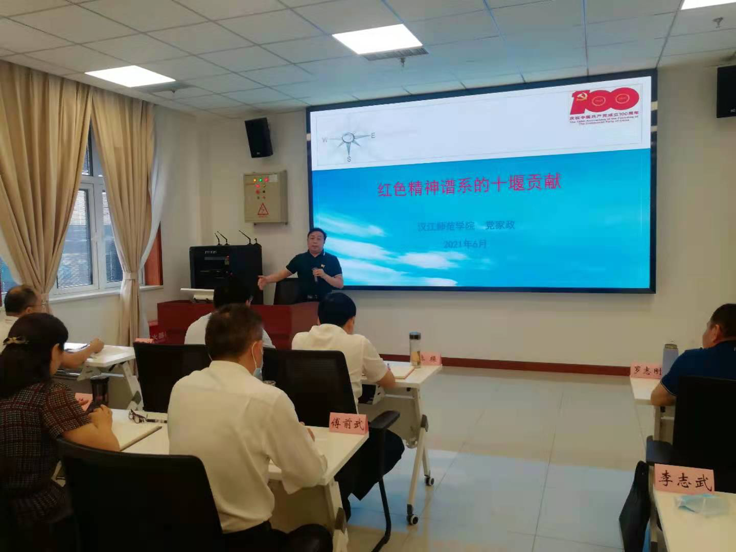 学员代表党家政以《红色精神谱系中的十堰精神》为主题,以习总书记论红色精神为切入点,阐述了中国共产党人的红色精神,进而又从老区精神、三线精神、南水北调精神等方面,图文并茂、生动鲜活地展示了红色精神谱系的十堰贡献。